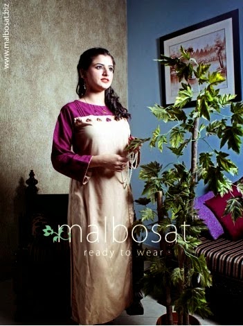 Malbosat clothing brand has developed in 2012 as online shopping store. The brand is dealing in cultural attires like Shalwar Kameez,casual kurti, tunics and also has some international attire like Indian Saree andLehenga Dress. Today we have brought some outstandingly designed casual kurta for our valued visitors to nourish their spring summer casual experience this year. In this Gloria Premium Kurta Collection 2014 by Malbosat Ready to Wear.